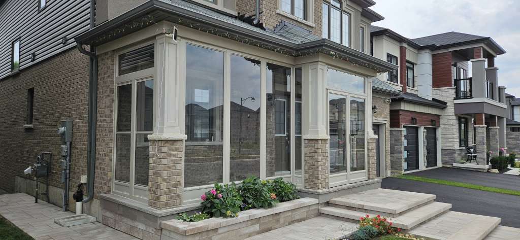 Brampton porch enclosures are a practical way to protect your entrance from snow, rain, wind, and insects while adding functional space to your home. At Vinyl-Professionals, we design and install custom aluminum porch enclosures in Brampton for front entrances, basement entries, and unique architectural openings.